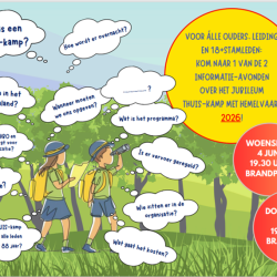 In 2022 (zie de foto) was alweer het laatste THUIS weekend van Scouting Brandevoort. En nu bestaat onze groep alweer 25 jaar! Ons 5e lustrum gaan we op een spectaculaire wijze vieren met alle leden en vrijwilligers! Iedereen die aangesloten is bij Scouting Brandevoort gaat mee op een avontuurlijk kamp. Op deze pagina lees je alles over het THUIS-weekend 2026.