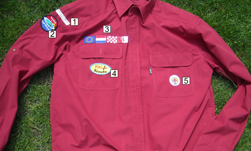 - Boven het linker borstzakje: Kwalificatietekens (EHBO-badge, gekwalificeerd leiding, etc)