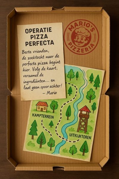 Na aankomst op de blokhut en het installeren van de slaapzalen, leek alles nog rustig. Maar tijdens de eerste activiteitencarrousel vonden de welpen mysterieuze ingrediëntenkaartjes en een brief in gebroken Nederlands: “Zoek mijn recept, of ik zoek jou. – Don Pizzaroni.”